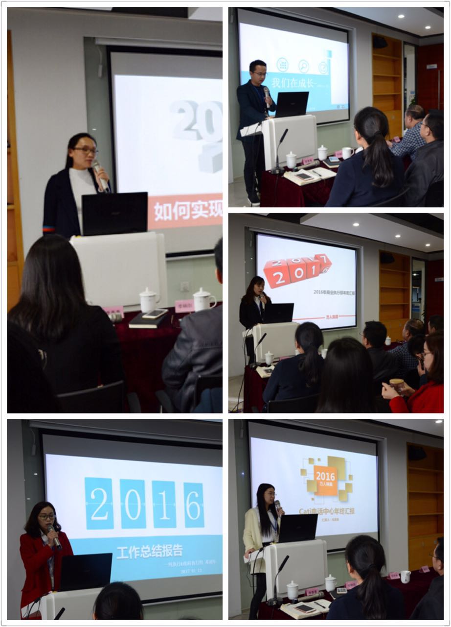 2016年,是万人调查集团团结一心、乘风破浪、逆流而上的一年,亦是所有万人同仁们同心共荣、风雨同路、勇往直前的一年。会上,项目管理中心各执行部门、研究中心各事业部以及各子公司就2016年工作进行了全 面的总结汇报,并对2017年度的工作制定了明确的目标。项目管理中心总经理李香香、研究中心总监周群利站在公司人才发展及业务发展方向上就两大中心的现状及未来发展进行了详细阐述。